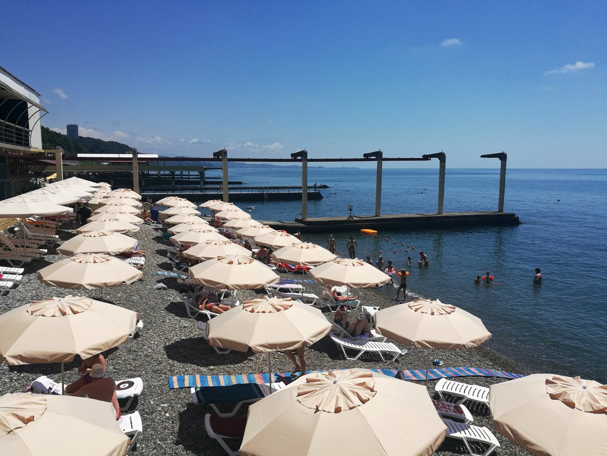 У комплекса есть собственный обустроенный пляж, где есть лежаки, тенты, медпункт, надводные аэросолярии, спортивный инвентарь, кафе, душевые и туалеты.